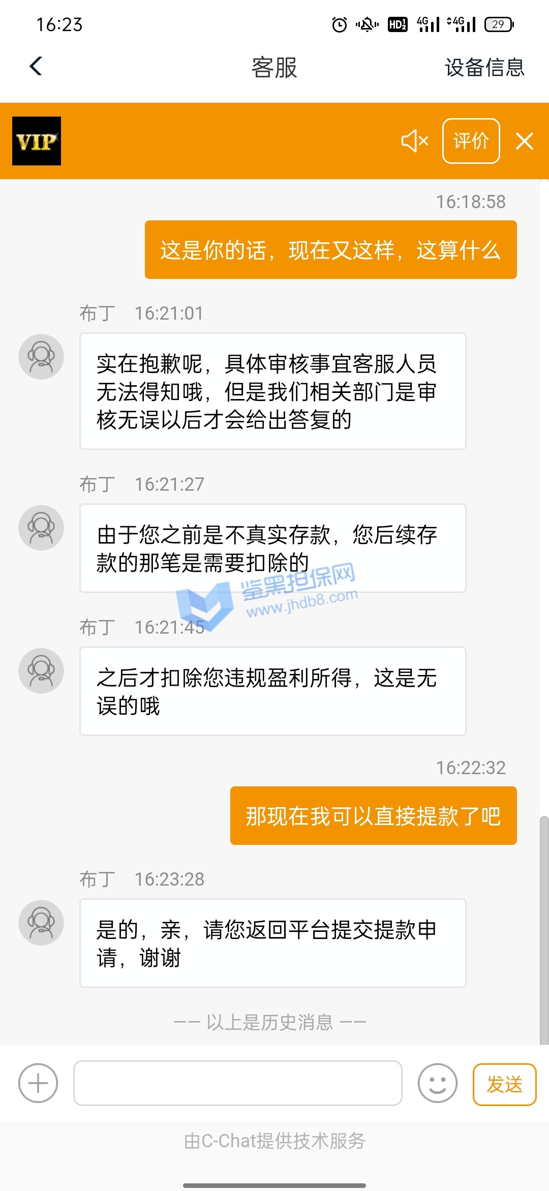 4.用户提交维权需为本人提交,若代替让人发布维权鉴黑担保网将拒绝受理;