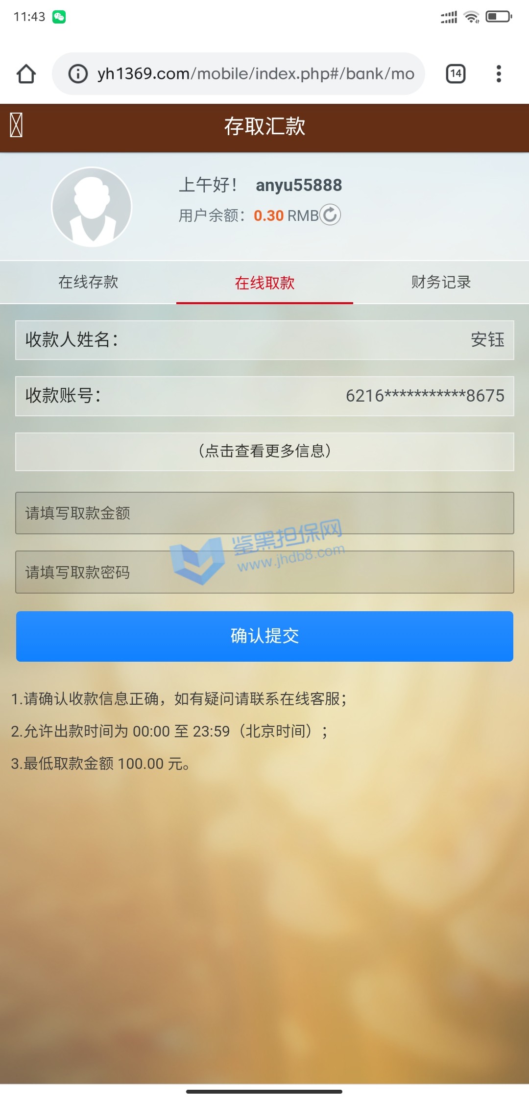 4.用户提交维权需为本人提交,若代替让人发布维权鉴黑担保网将拒绝受理;