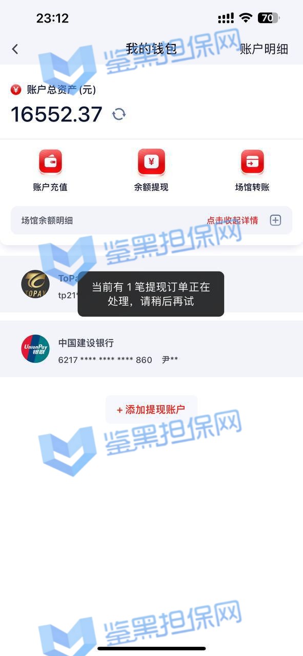 在圆梦娱乐充值1000元,靠PG电子一路杀到赢利1.7万元,整个过程没任何违规操作。先提现1507元到账,账户里还剩1.6万,结果后续提现申请直接卡死,页面永远显示“三方正在陆续打款中,请耐心等待”,钱却死活不到账。赢小钱没事,一赢大钱就黑款,这平台他妈的太不要脸了。明显因为赢利高故意卡着不放,信誉烂到家。