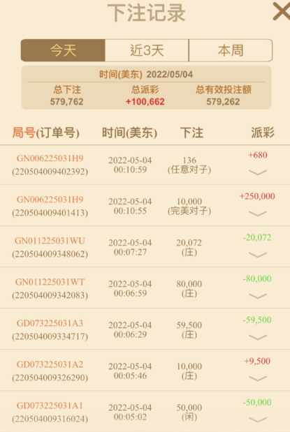 第一把就是和局,上来就是和局,嗯,有的时候也不敢下注了吧,