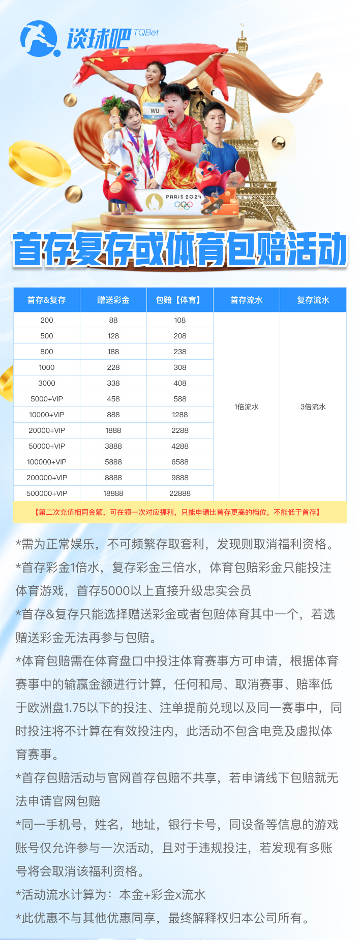 1、存款及投注额仅计算自然周、自然月,需在达到要求后的30天内进行申请,逾期则视为自动放弃。