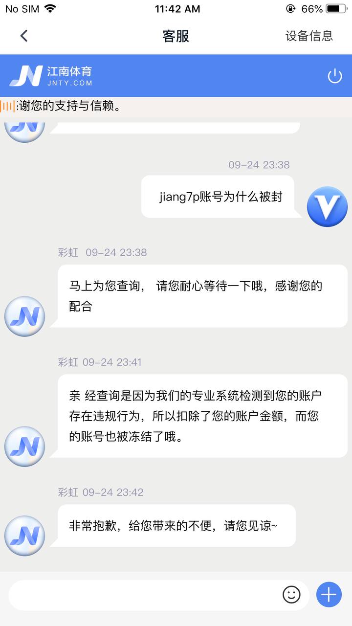 江南体育就是个黑台子,赢多了就直接封号,输不起的黑台子。我刚开始几k几k的玩,赢钱还给提款,到了后面金额过万,赢了他几万,提款发现要审核很久,我就感觉不对,后面就直接封我号了。找客服,客服就说我违规,哪里违规了也不能告诉你,没领过彩金,也就只在这一个台子一个号玩,哪里存在违规一说?赢那几万就黑掉了,真是丢了脸面和信誉,远离江南体育!