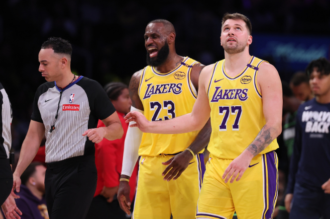 老詹年纪大了力不从心,里夫斯和东契奇后场双漏勺,湖人无论摆海斯在场的一内四外还是摆电风扇打中锋的五外阵容,最难受的点无疑是对位单防。